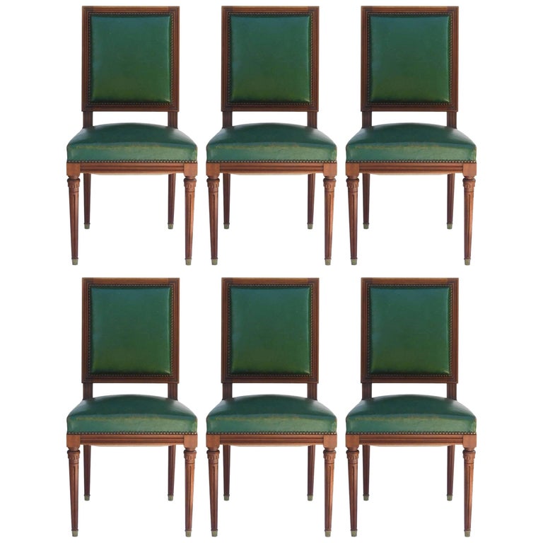 Six Dining Chairs French Louis Xvi Revival Green Leather Upholstered Circa 1920 At 1stdibs