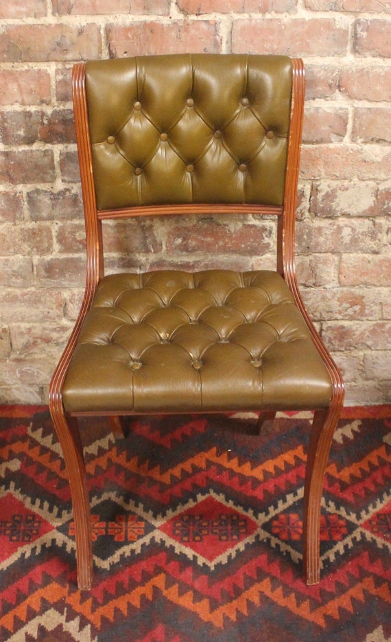 Green Leather Chesterfield Dining Chairs Etsy